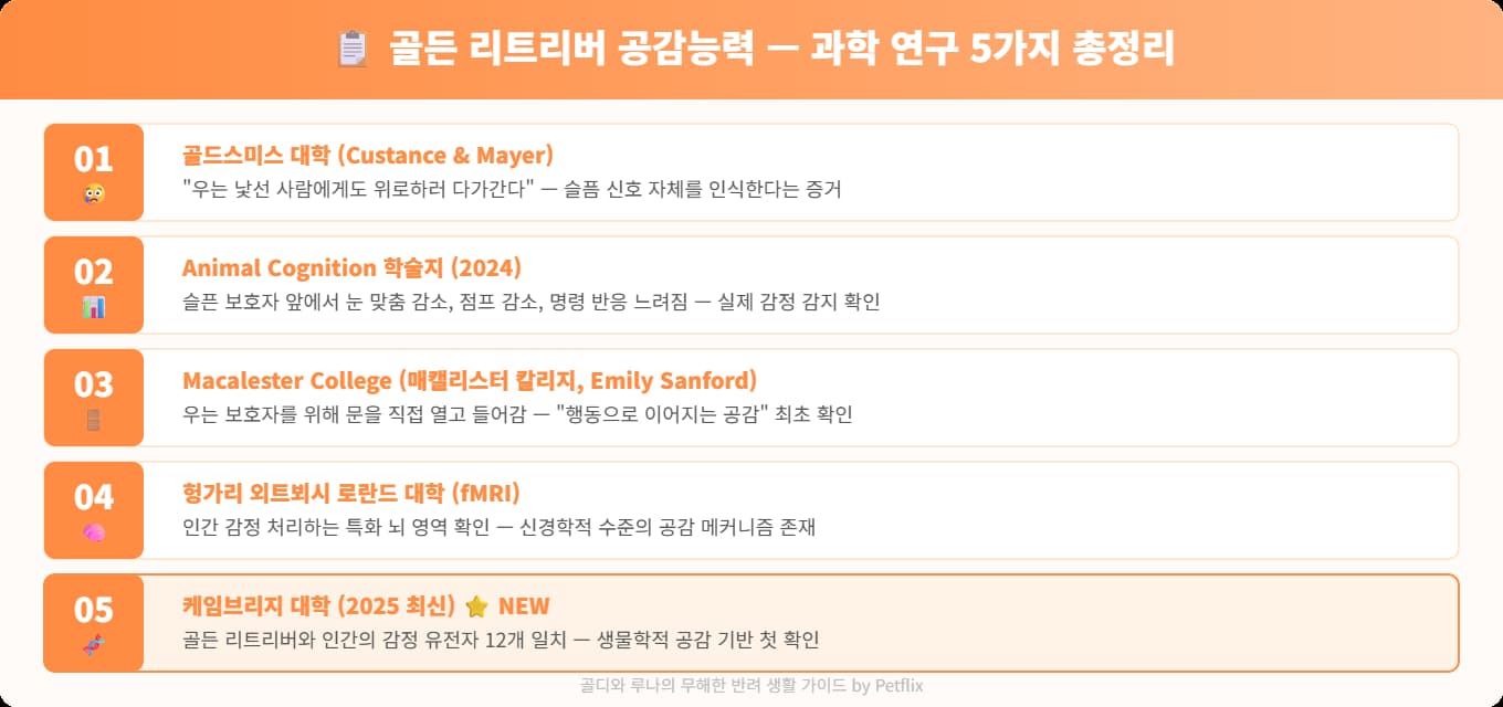 📋 핵심 요약 — 골든 리트리버 공감능력 5가지 과학 근거