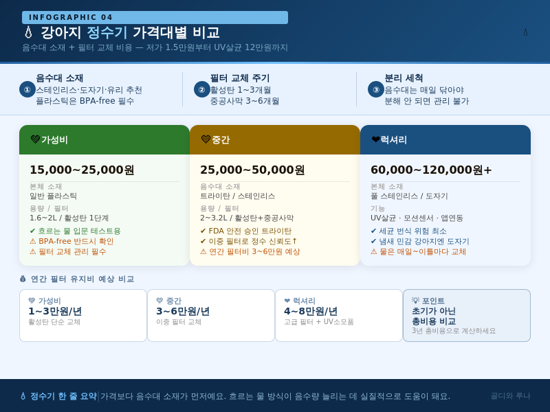 3. 💧 정수기(자동급수기) — 음수대 소재와 필터가 핵심인 이유